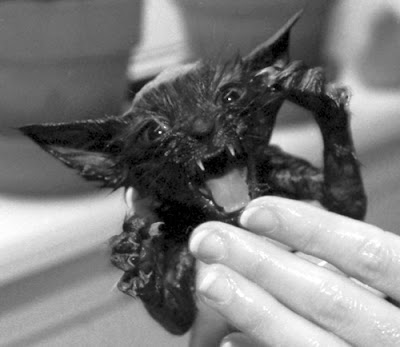 Bat kitty scared me! Perfect pic for Halloween, bwaaahhhh...The last kitty pic is the cutest kitten I've ever seen. I like the shape of his tiny head. He doesn't even look real!
